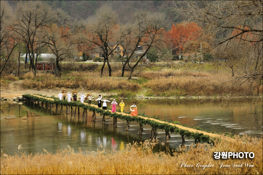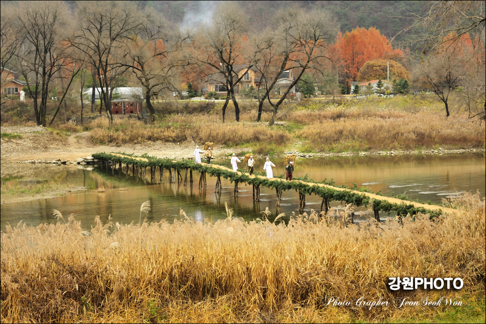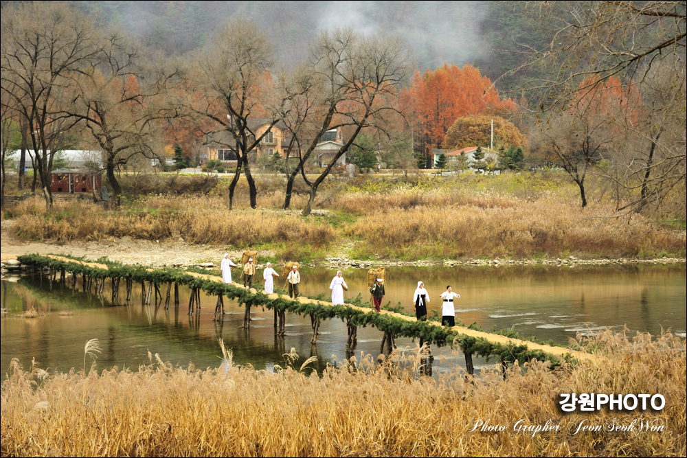 11.8일 주천 섶다리 행사는 사진작가와 관광객 100여명이 참가한 가운데 진행을 하였다