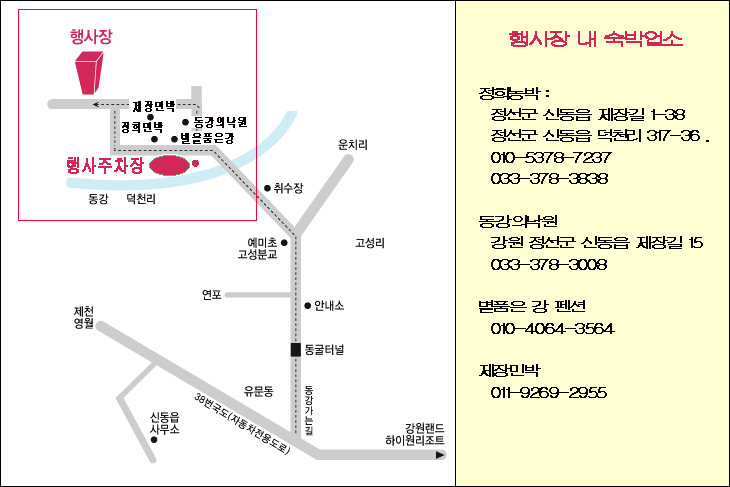 *행사장 찿아오는길 : 신주소 : 강원 정선군 신동읍 제장길 1-38