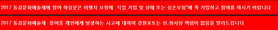 *행사참가비 : 1일30.000원 2일 60,000원 숙박 개인별도 (래프팅 이용권 중식제공,점심만 제공)