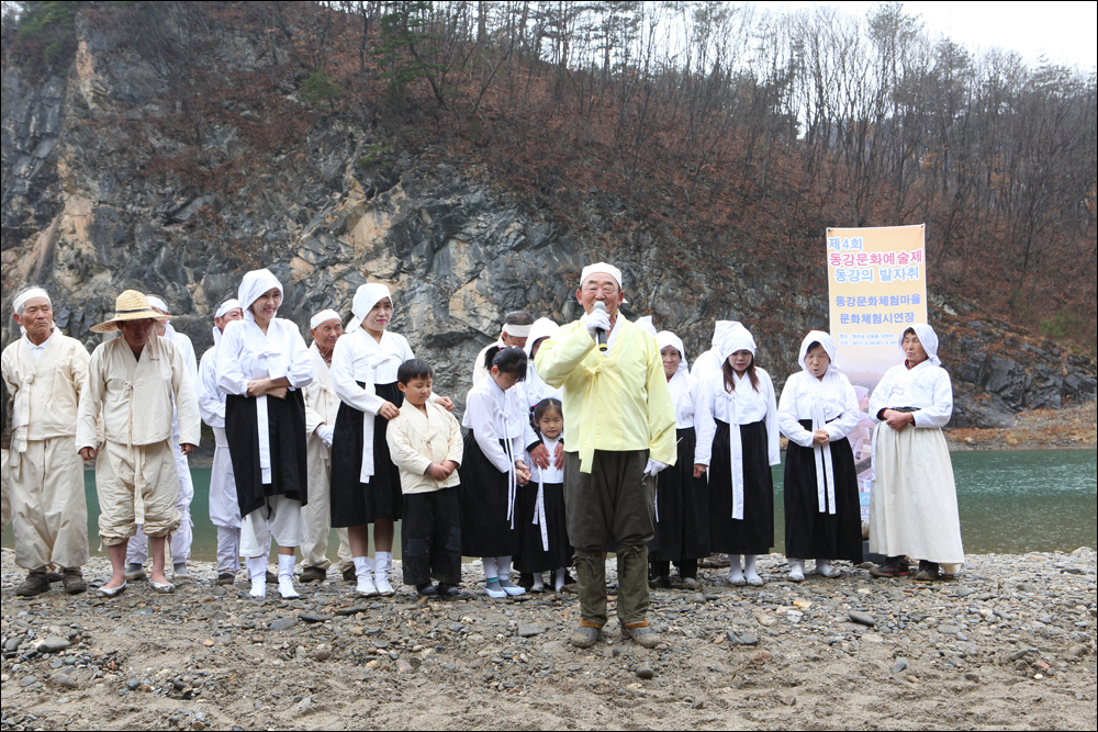 덕천리 방문한 고마움을 환영인사로 답하고 이어 마을 주민들이 정선아리랑 합창으로 제4회 동강문화예술제 '동강의 발자취' 개막식을 알리고 본 행사로 이어졌다.