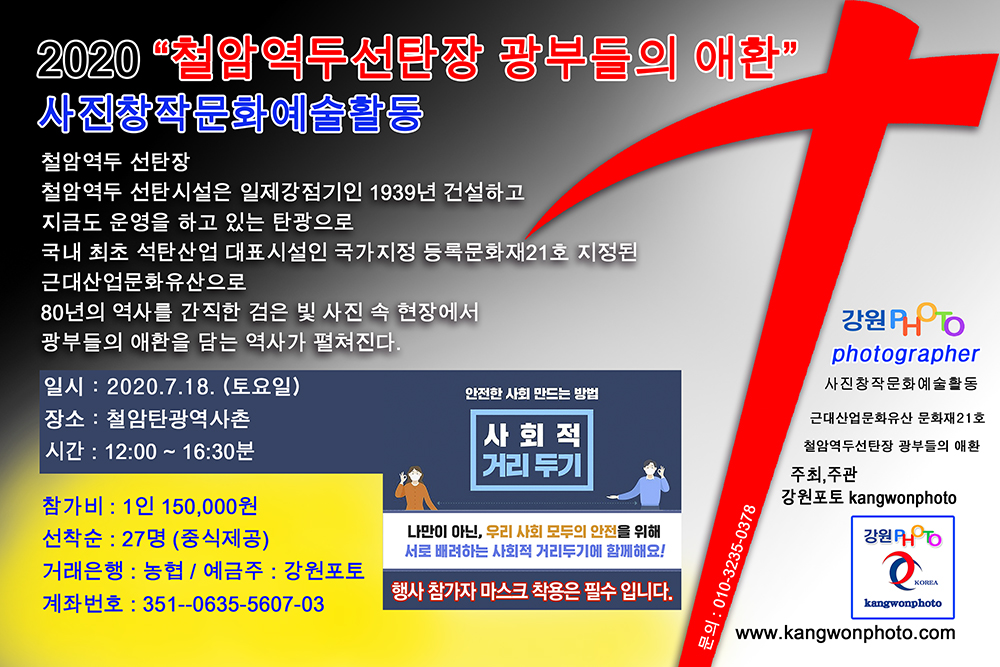 13:30 ~16:30분까지 2020 제 1회 철암역두선탄장 광부들의 애환 (사진창작문화예술활동)