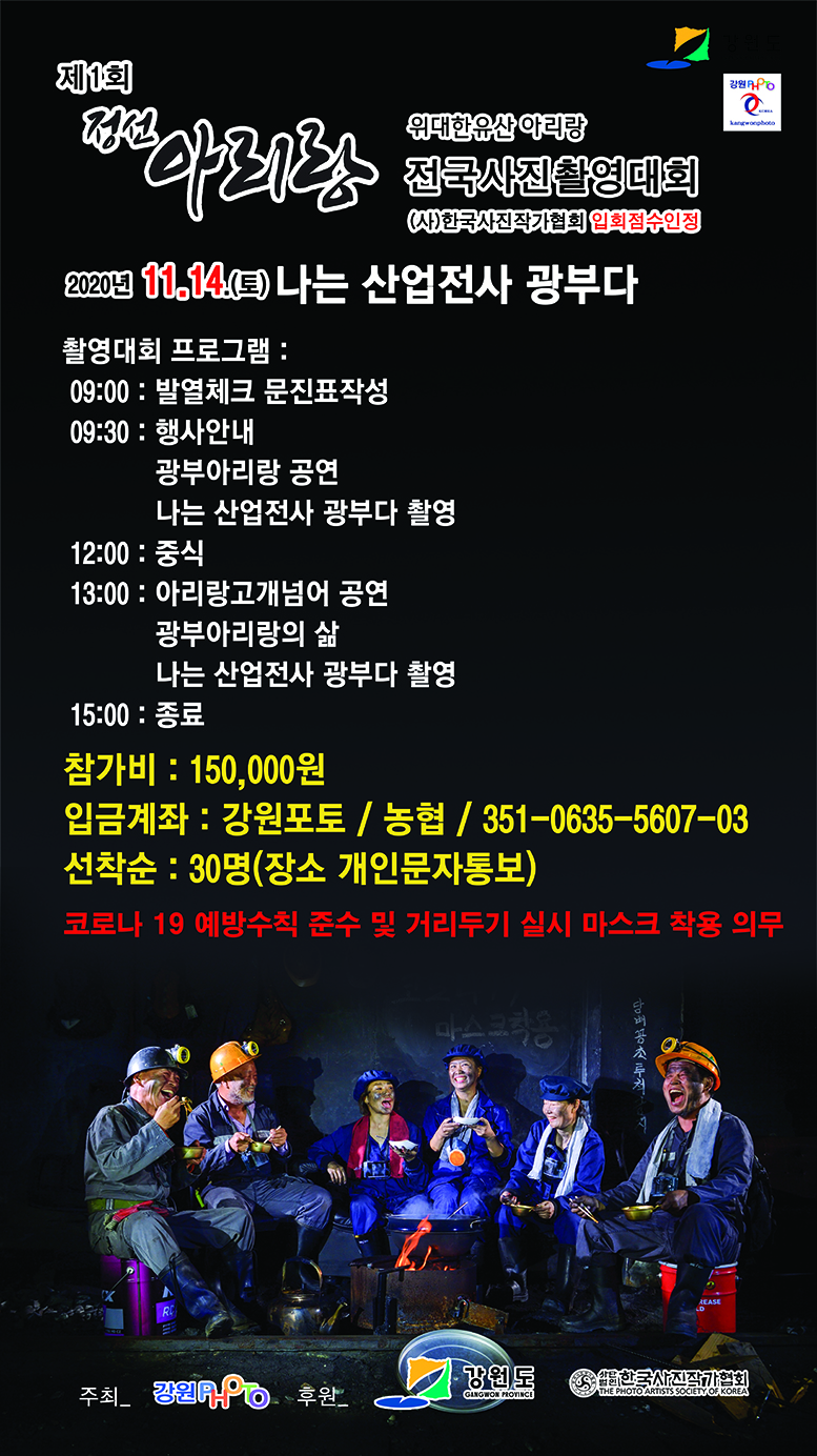 '나는 산업전사 광부다. 전국사진촬영대회를 11.14.(토) 실시합니다.