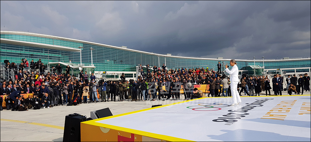 그리스 아테네 파나티나이코 스타디움에서 출발한 성화가 11월1일 오전 인천공항에 도착을 하였다.