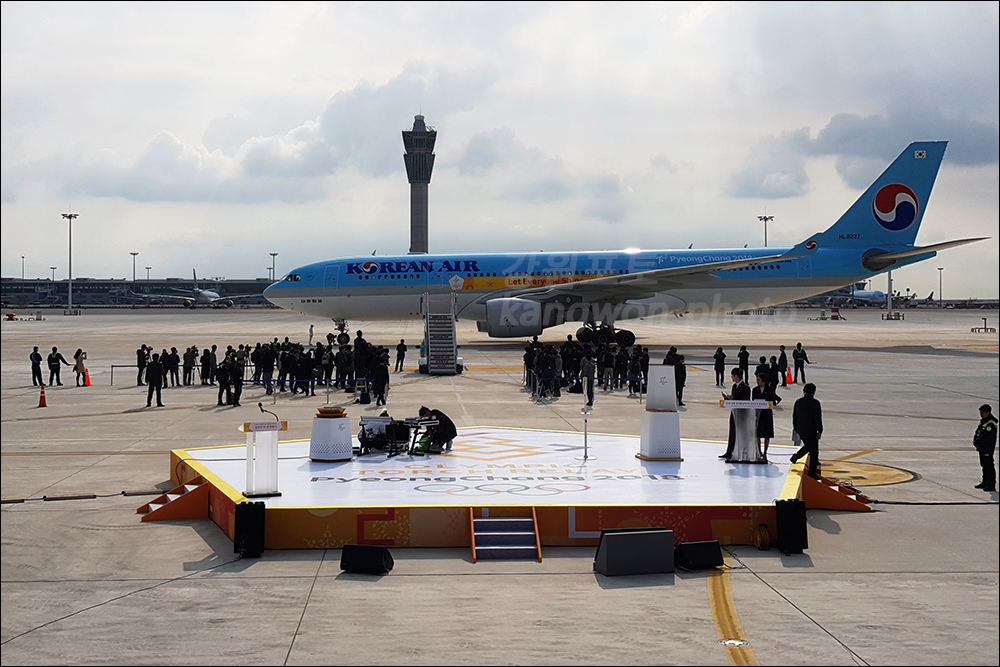 김연아 올림픽 홍보대사 이낙연 총리 인천공항 특설무대 임시 성화대에 올림픽 성화 점화로 2018㎞ 대장정의 시작을 알렸다.