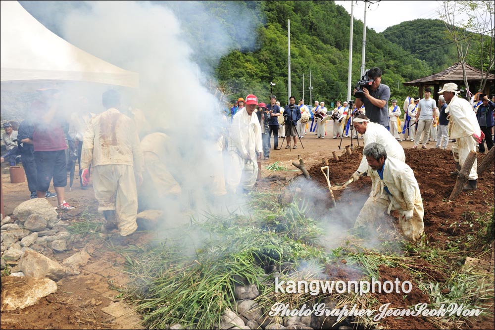 전통의 맥을 잇는 행사가 전국에서 정선군 남면 유평리 밖에 없다는 자부심으로 삼을 찌기위해 열심히 하고 계시는 유평리 주민들입니다