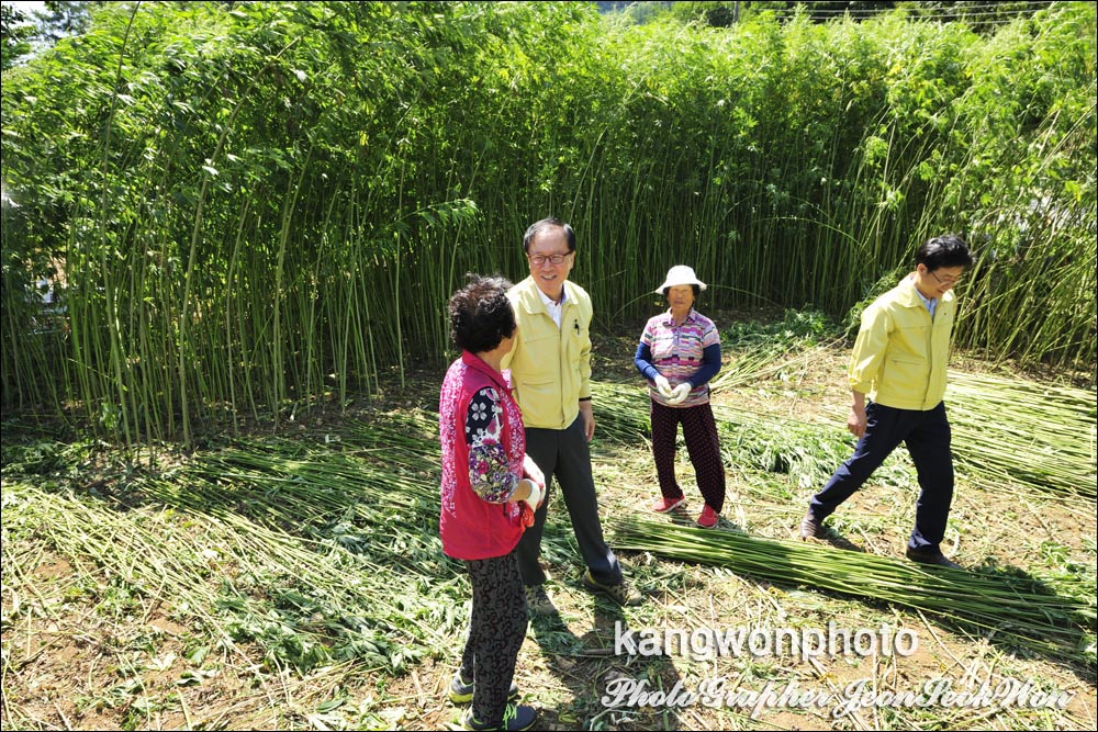 전통문화 계승발전에 노력하는 유평리 주민들을 찿아 위로하고 계시는 전정환 정선 군수