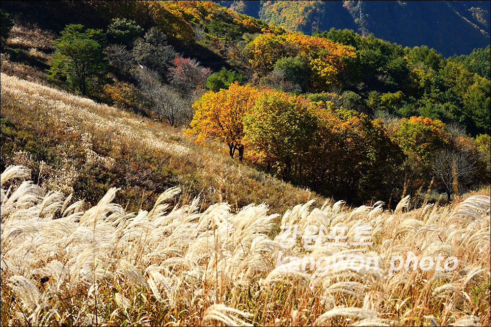 한폭의 그림을 그리고 있는 민둥산 억새꽃밭