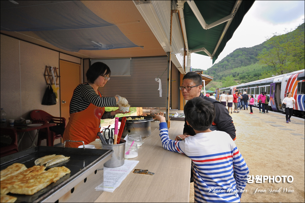서울에서 정선아리랑 열차타고 정선오일장 구경하고 다시 서울로 올라가는길에 선평역에서 간식먹으로 들렀습니다^^