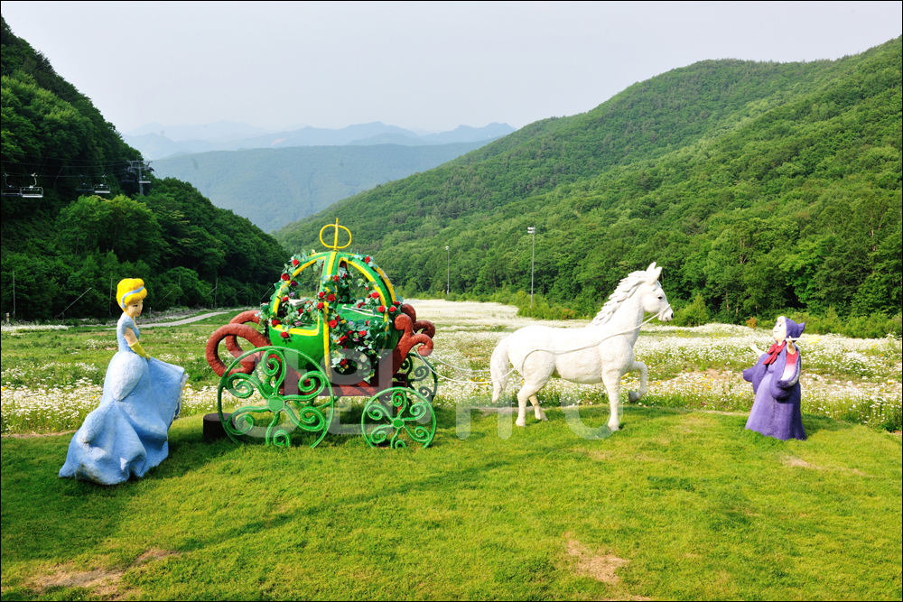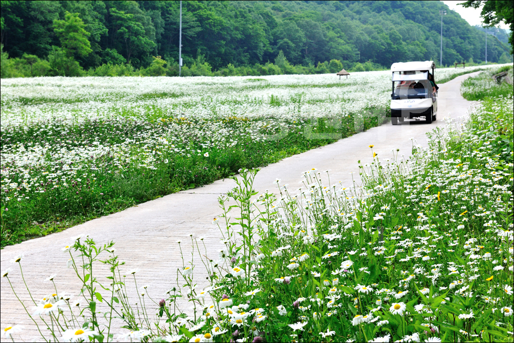 하이원리조트 슬로프 구간에 야생화천국으로 물들었다. 바다처럼 넓은 수평선이 온통꽃으로 수를 놓고 환상의 물결을 이루고 있다. 하이원리조트에 숙박을 하면서 아침산책코스로 천상의화원의 걷는 세상을 맞는다. 6월에는 샤스타데이지꽃 축제도 열리고 야생화 카트 투어도 운행하고 있어 꽃길을 타고 가는 순간 만큼은 마음도 몸도 산소같은 기분을 느낄 수 있다.